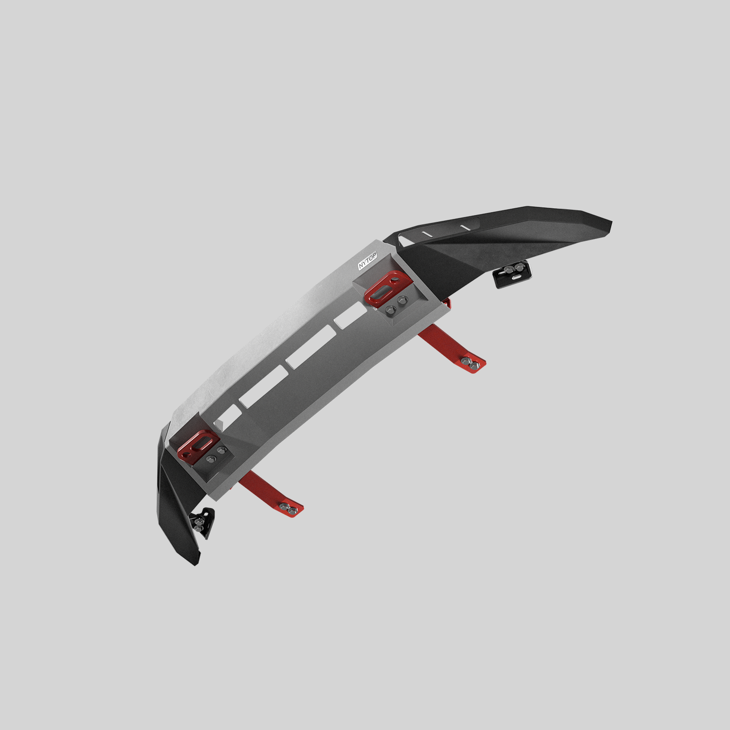 NYTOP's Lexus GX550 Front Hybrid Bumper is finished in wrinkled black powder coat, and TIG welded with 3/16 inch high-strength steel to ensure durability, providing an extra layer of protection, increased clearance and approach angle (around 5°), while replacing the lower plastic valance. No cutting or trimming of the bumper is required. A lightweight aluminum version in silver (middle bumper only) is also available (built to order, estimated lead time 8-14 weeks).