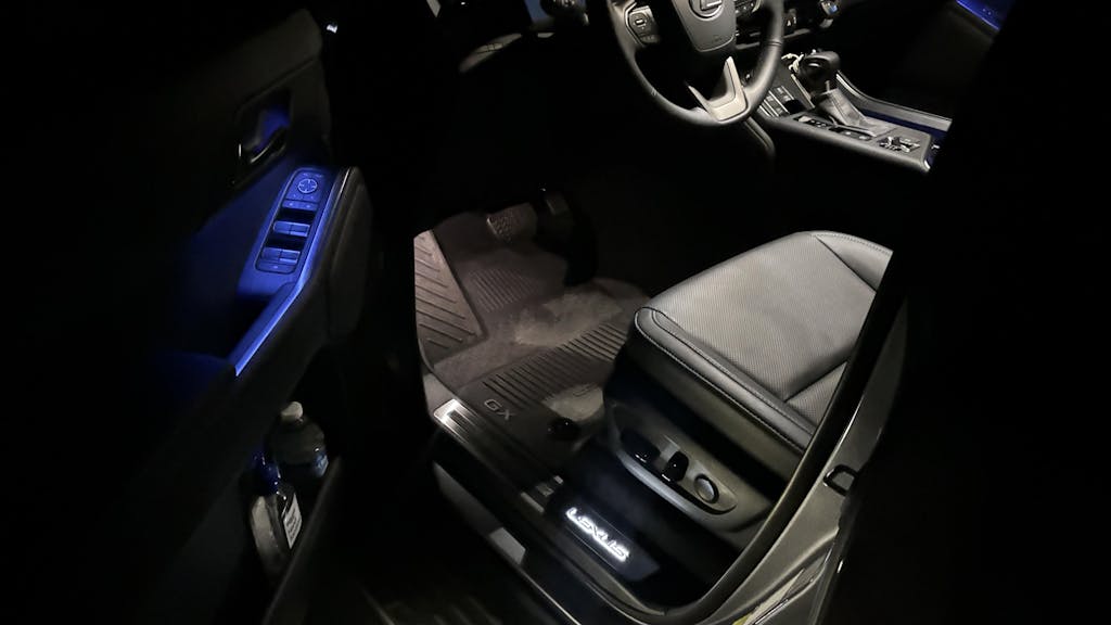 The front (driver and passenger) set is LED illuminated to accentuate the luxurious Lexus logo. The rear set is not illuminated.