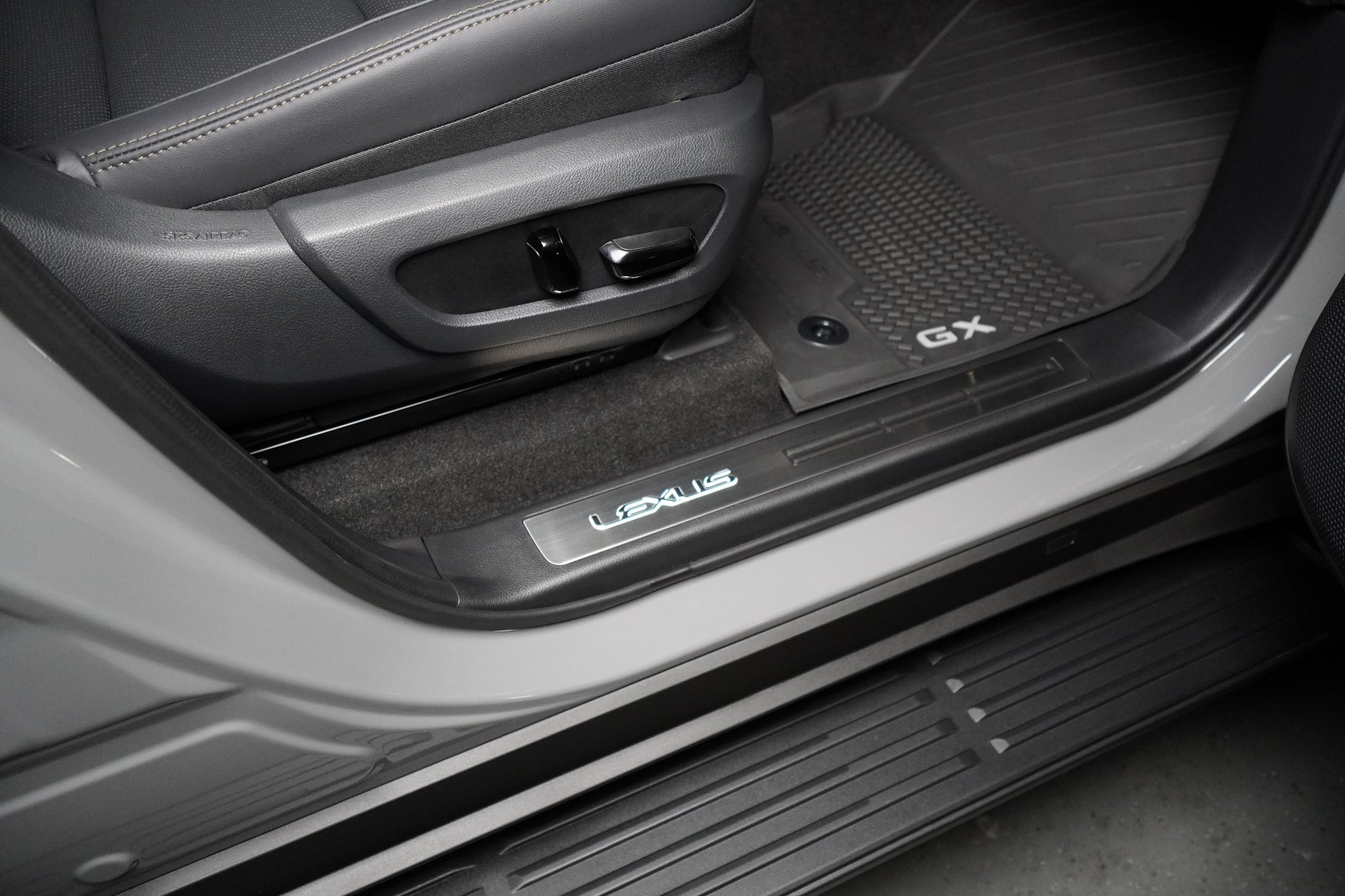 All four door sills are precisely contoured to the GX550 and accented with brushed aluminum to add class and help protect against unsightly scuffs, scrapes, and scratches.